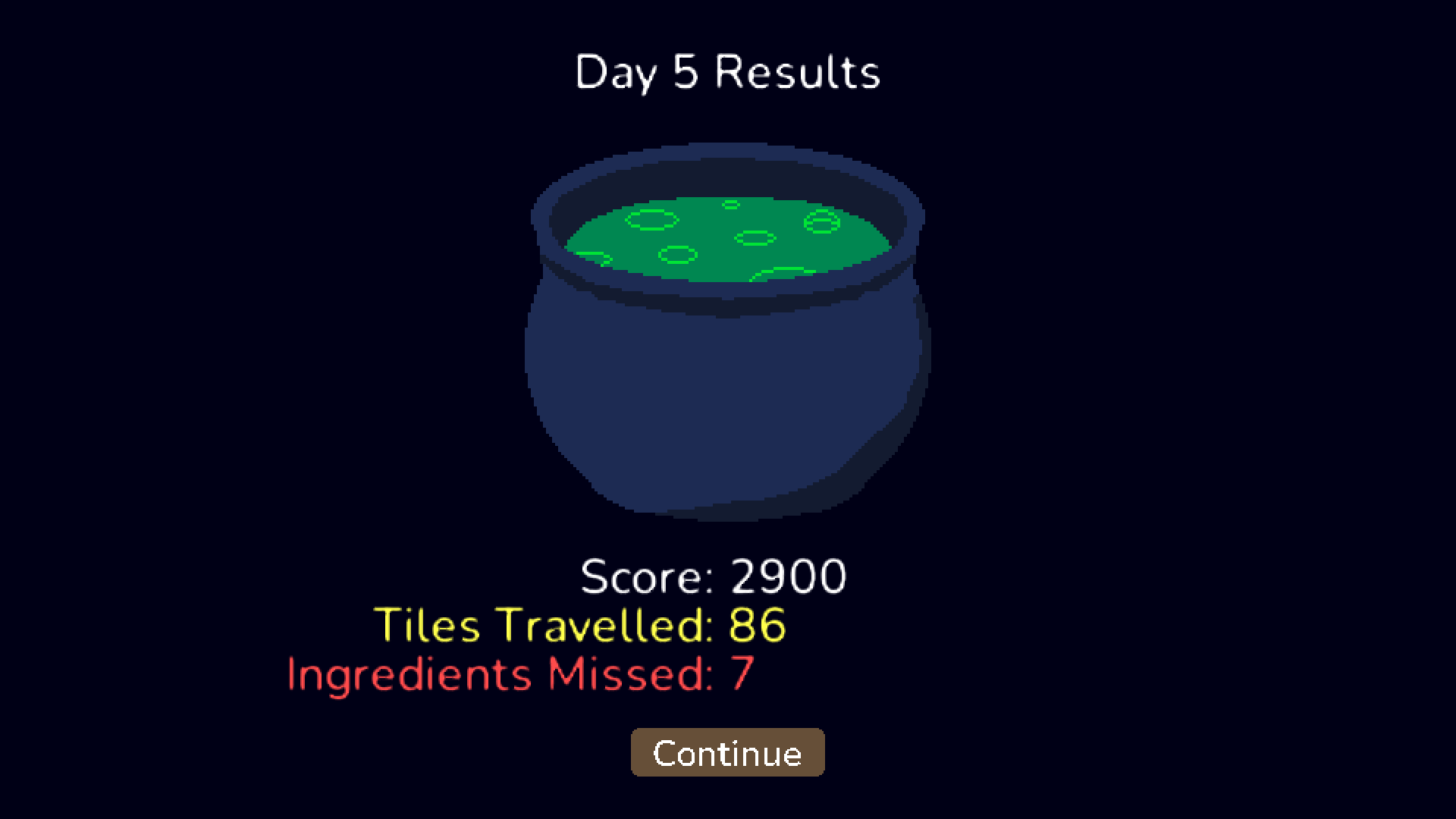 Cool little game! I got 6500 points with 156 tiles traveled and 0 ingredients missed :)